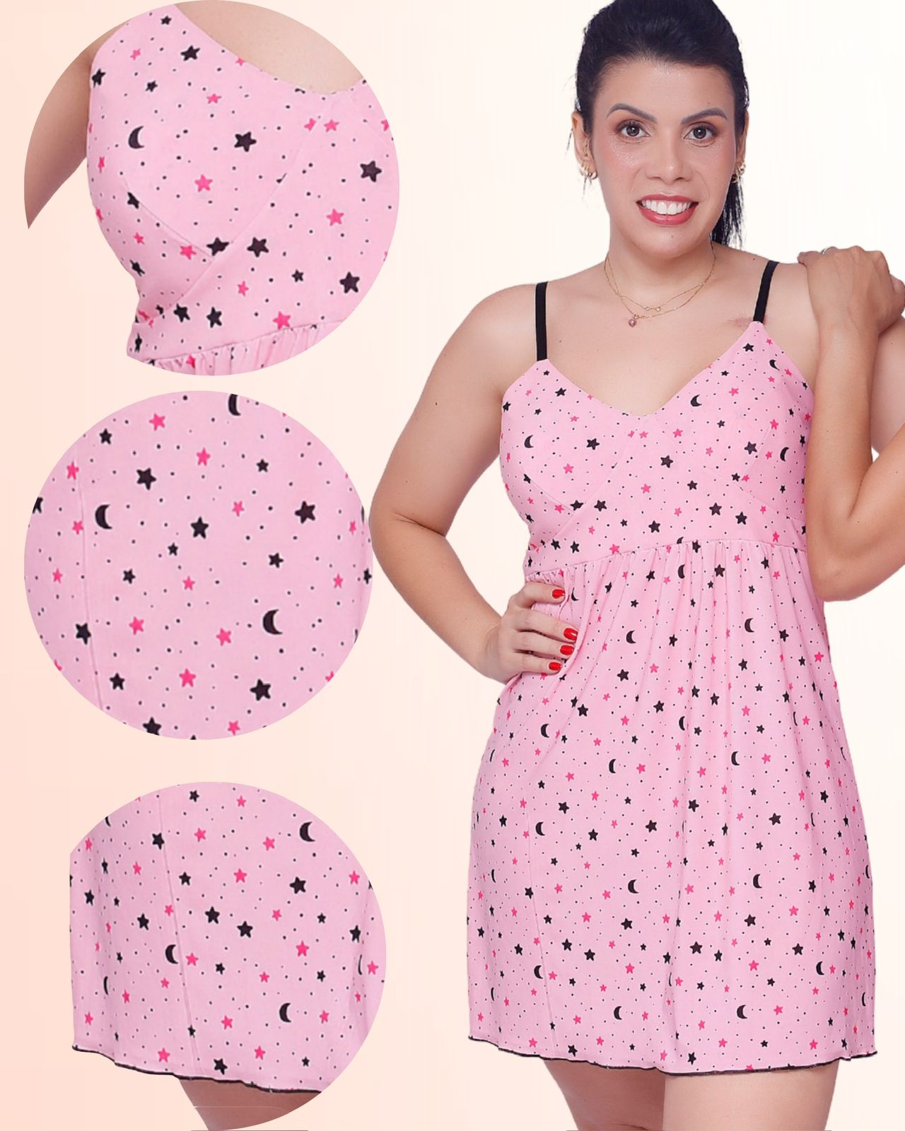 Com caimento leve, feminino e confortável, esta camisola é perfeita para quem gosta de se sentir bonita até nos momentos mais simples.