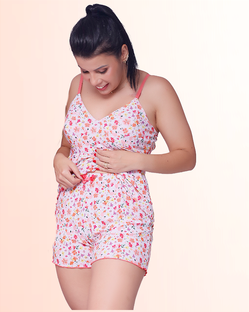 Shortdoll Jaine é confeccionado com tecido liganete com delicadas estampa floral, criado para envolver seus momentos de descanso com muito charme, leveza e feminilidade.